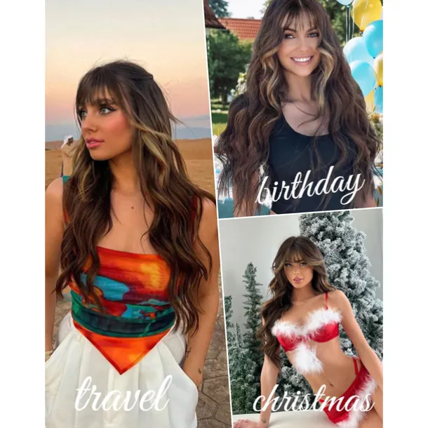 Brown Wig with Bangs for Women Long Wavy Hair Wig Brown Highlight Wig Curly Wavy Synthetic Wigs for Girls Daily Party Use Halloween Wigs
