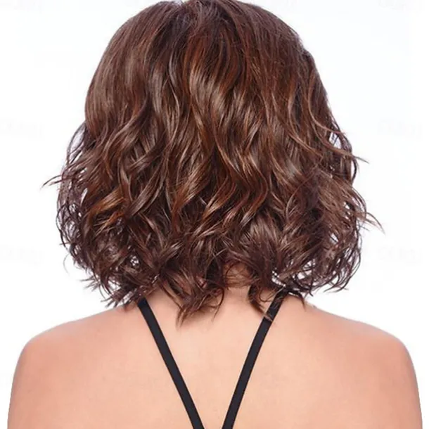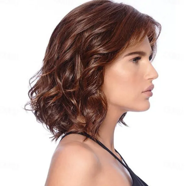Brown Wigs for Women Synthetic Wig Curly Side Part Wig Medium Length Brown / Burgundy Synthetic Hair 16 Inch Women’s Fashionable Design Women Synthetic Brown