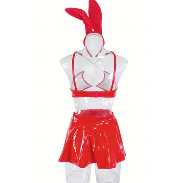 Bunny Girl Halloween Cosplay Costume Bra Mini Skirt Glossy Sexy Costume Adults’ Women’s Carnival Masquerade Mardi Gras Performance Party Halloween Easy Halloween Costumes Dress Up