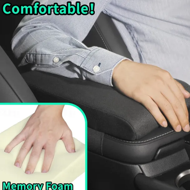 Car Center Console Cover Memory Foam Armrest Cushion & Arm Rest Protector & Middle Organizer Black Elbow Pillow & Seat Central Box Lid Pad & Universal Interior Accessory for Truck Auto SUV