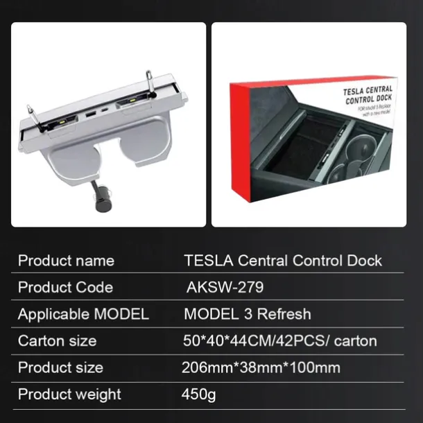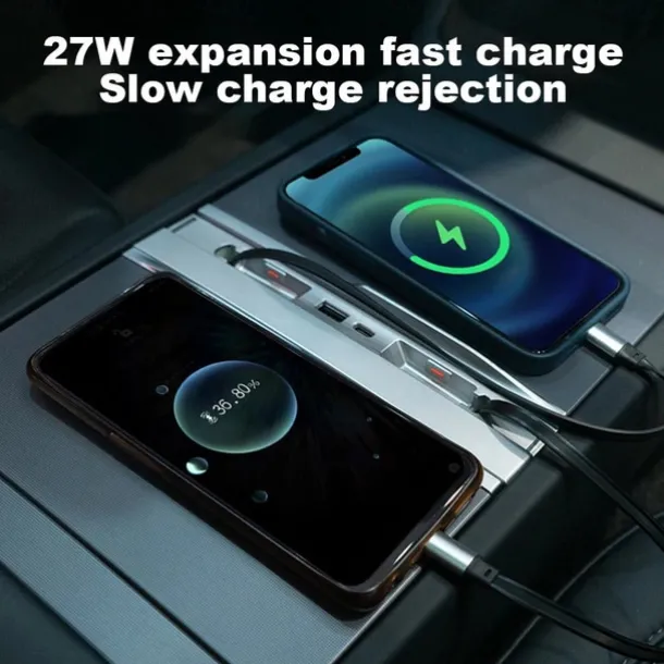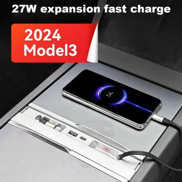 Car Intelligent Docking Station Type-C PD 27W Fast Charger USB Extender Docking Station Powered Splitter for Tesla Model 3