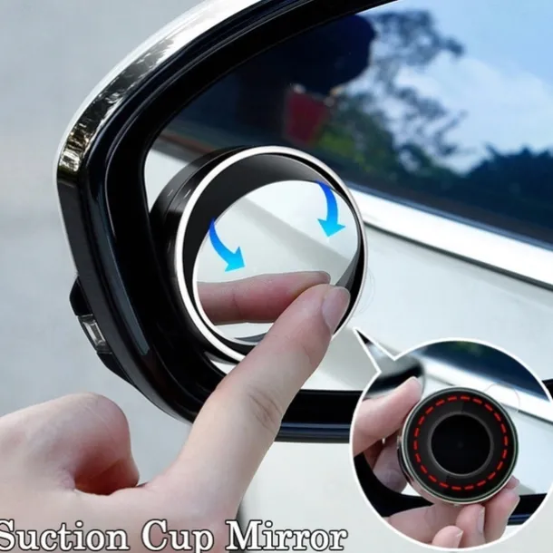 Car Suction Cup Mount Auxiliary Rearview Mirror 360 Degree Rotating Wide-angle Round Frame Blind Spot Mirror