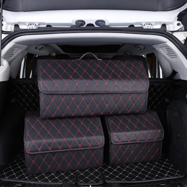 Car Trunk Organizer Box Large Capacity Auto Multiuse Tools Storage Bag Stowing Tidying Leather Folding For Emergency Storage Box