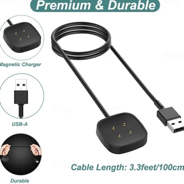 Charger for Fitbit Sense/Sense 2/Versa 3/Versa 4, Replacement Charging Cable Cord Magnetic Dock Stand for Fitbit Sense 1/2, Versa 3/4 Smartwatch