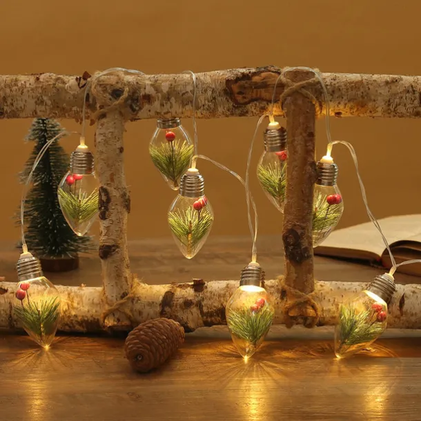 Christmas Bulb Fairy String Lights Christmas Tree Snowflake Rose Fairy Lights 1.5m 10LEDs Battery Powered Home Indoor Outdoor Decor New Year Party Xmas Tree Decoration Garland Lights