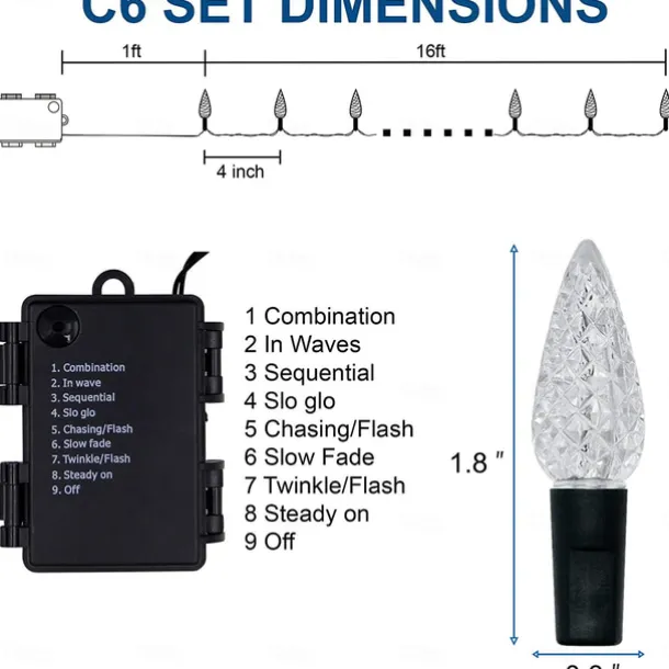 LED Beads Quantity: 50, Light Color: Warm White, Power Supply: AA Batteries Powered, Type: Christmas String Lights, Style: Globe / Ball String Lights, Features: Holiday, Linkable, Waterproof, Voltage (V): 31, Length: 5m, LED Type: 5630 SMD, Control Mode: Mode Switching,