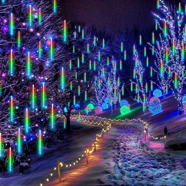 Christmas Lights Outdoor Meteor Shower Lights Falling Star Lights 30cm/50cm/80cm 8 Tubes LED Icicle Snow Lights Raindrop Lights for Xmas Tree Halloween Holiday Party Decoration