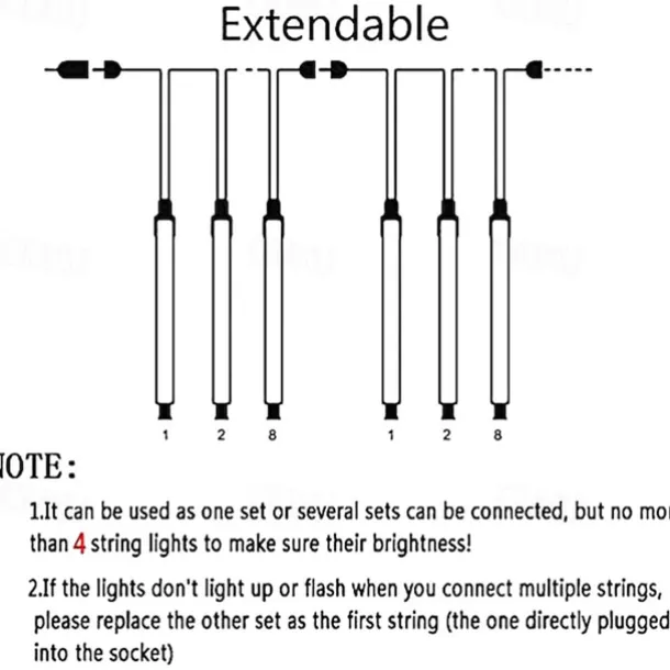 LED Beads Quantity: 192/384/576, Light Color: Red, Warm White, White, Pink, Purple, Green, Blue, Power Supply: Plug, Type: String Lights, Christmas Meteor Shower Lights, Style: Meteor Shower Lights, Waterfall / Christmas Tree Lights, Features: Patio, Christmas Decoration, Linkable, Holiday, Voltage (V): 110-240, Length: 4m, Mode: 1(On / OFF), LED Type: EL, Batteries Included: No, IP Rating: IP44, Occasion: Balcony / Terrace, Garden, Fence, Eaves / Roof, Bedroom, Stairs / Corridor, Window / Curtain / Wall, Outdoor, Party / Banquet, Wedding, Courtyard, Patio, Lawn / Shrub, Control Mode: Mode Switching,