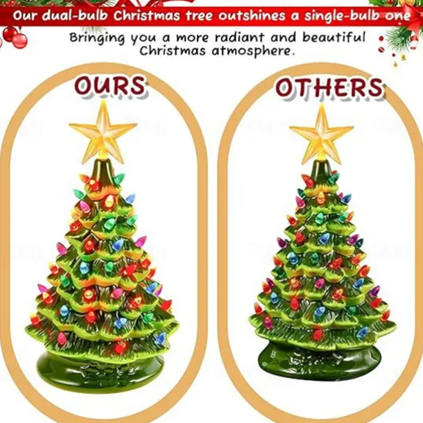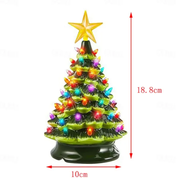 Christmas Tree Ceramic Christmas Tree Tabletop Decoration LED Light Hand-Painted Vintage Christmas Holiday Decoration 1PC
