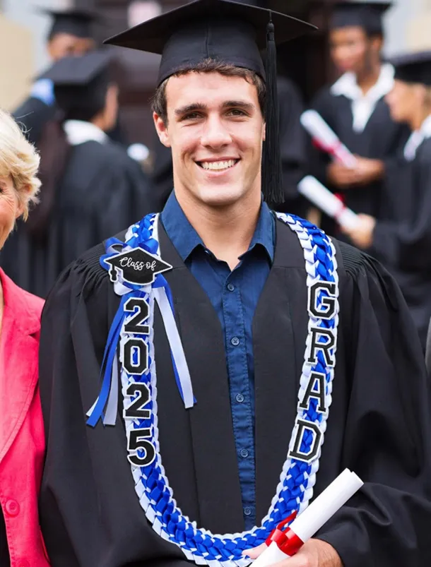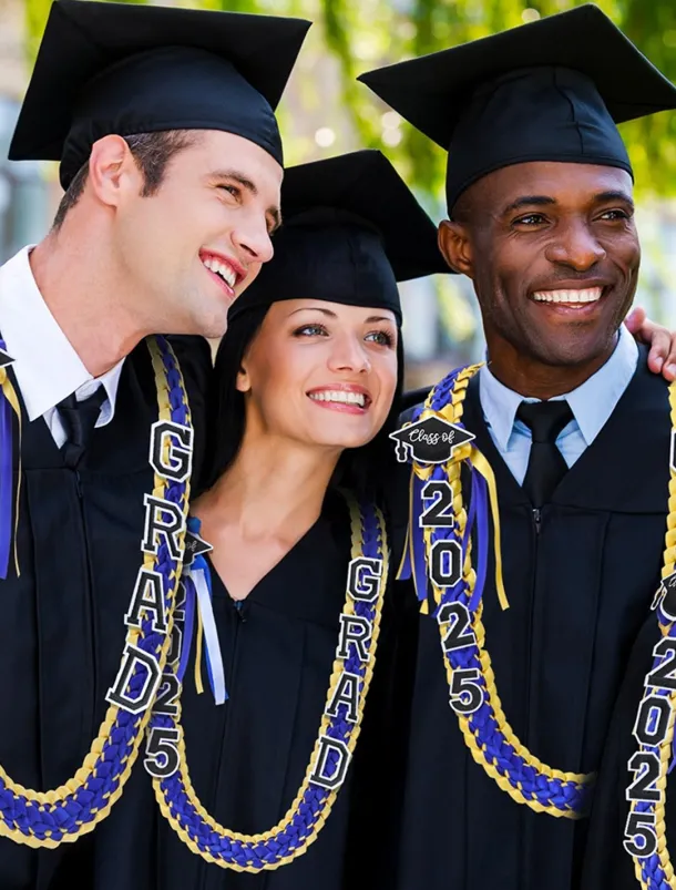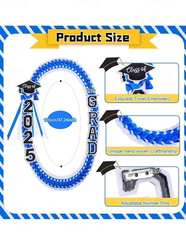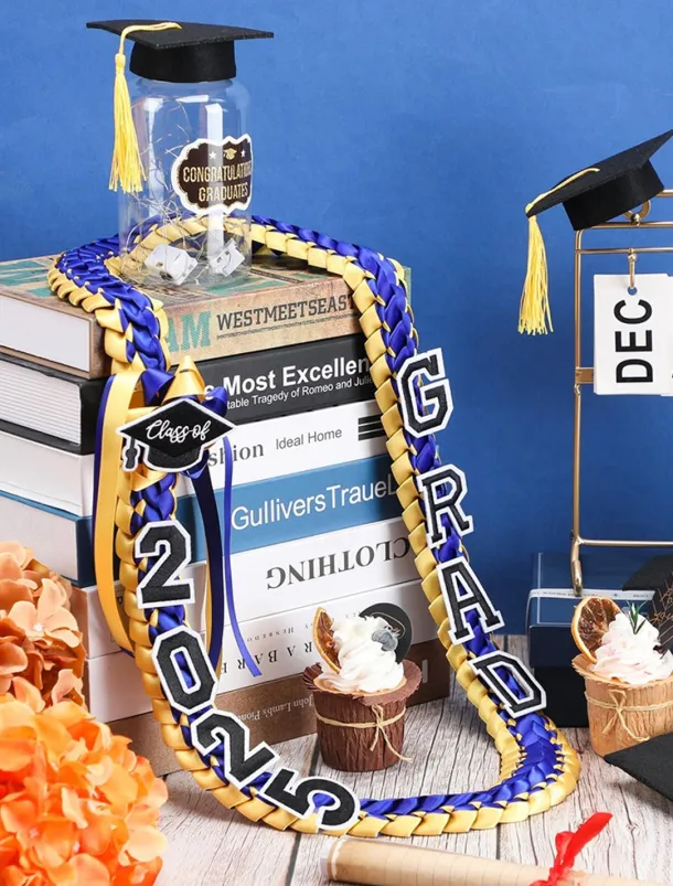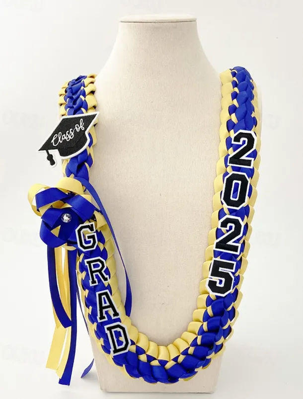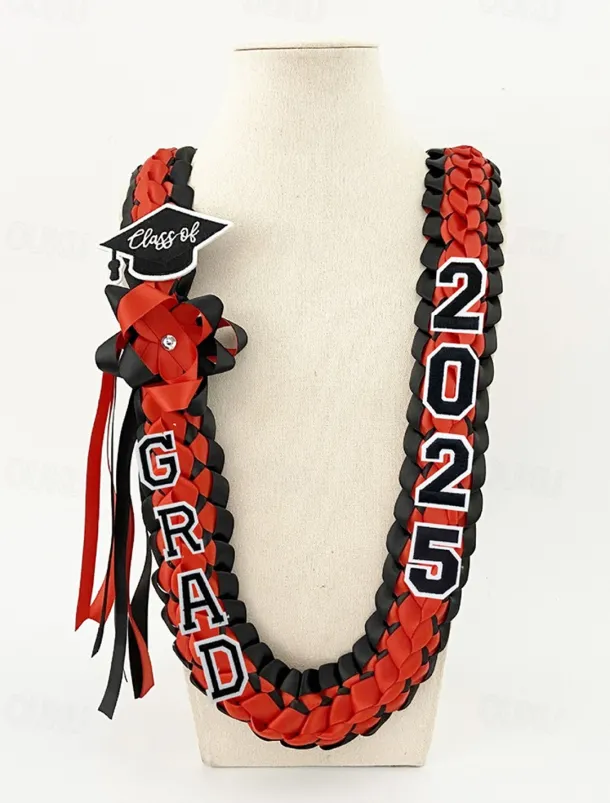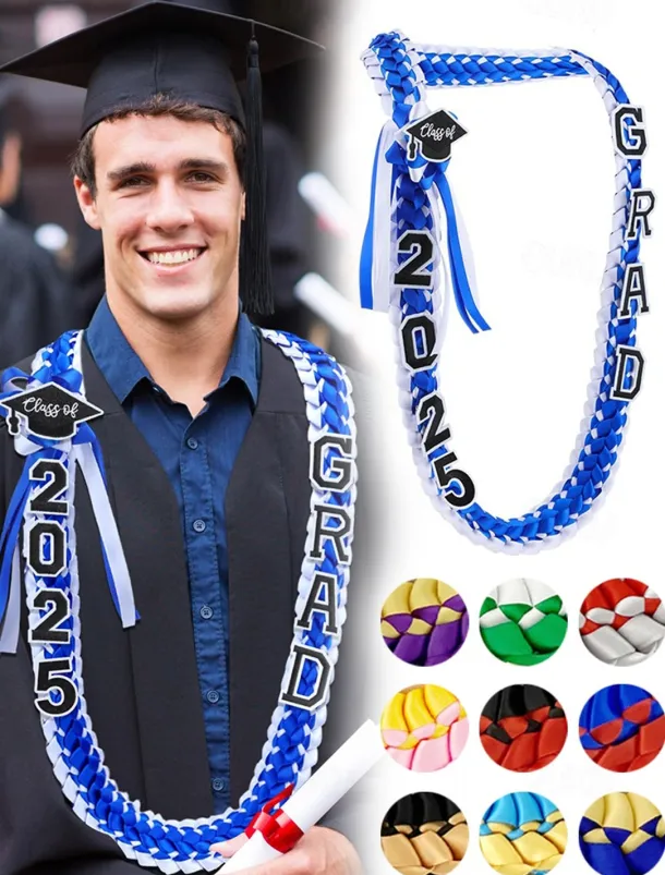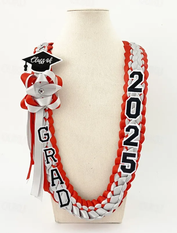 Class of 2025 Graduation Wreath – Braided Ribbon Necklace with GRAD Letters and Hat Charm, Handmade Keepsake Gift for High School and College Graduation Ceremony