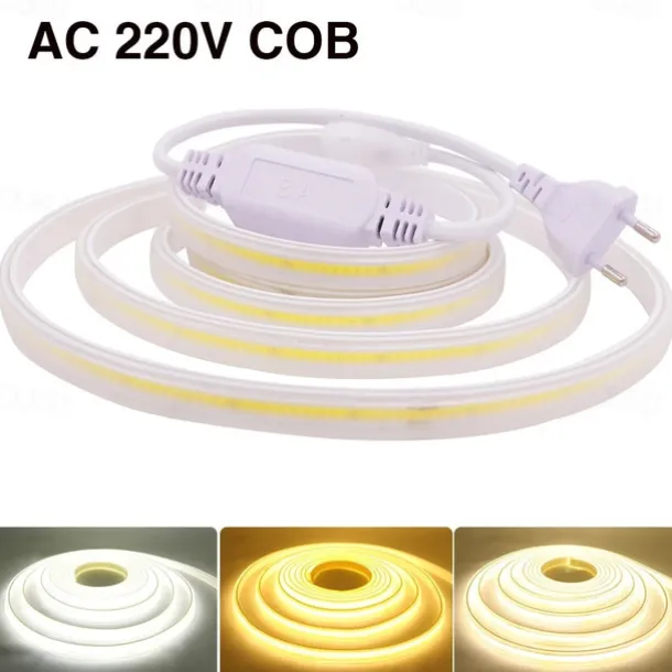 COB LED Strip Lights, 360 LEDs/m Waterproof Outdoor Decor, Flexible High-Brightness Ribbon Light, 3000K/4000K/6000K, 220V