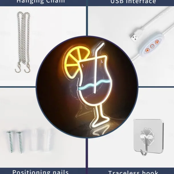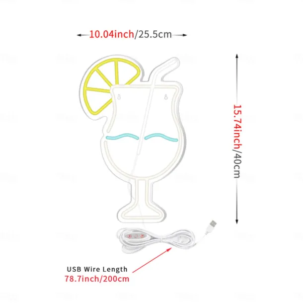 Cocktails Neon Sign Light, Dimmable LED Wall Decor USB Powered for Bars, Bedrooms & Parties | USB Acrylic Drink Art Night Light, Perfect Gift for Beer Bars, Clubs & Events