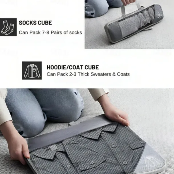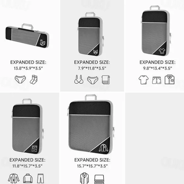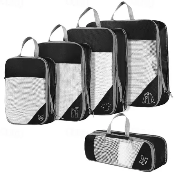 Compression Travel Packing Cubes Set for Luggage Storage and Backpack Organizer, Expandable Mesh Travel Bags, 5-Piece Set for Space Saving and Organizing Clothes