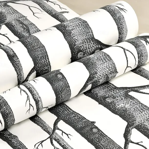 Cool Wallpapers 1pc Birch Tree Wallpaper Black and White Peel and Stick Wall Mural Wall Sticker Self-Adhesive PVC For Home Decor Cabinet Table Chair Room Backdrop Renovation 45cmx600cm/17.7″x236.2″