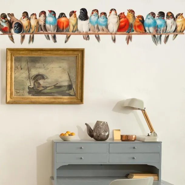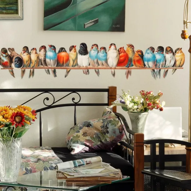 Cool Wallpapers 1Pcs Birds Wall Stickers, Removable 3D Birds Stickers Wallpaper Border, Wall Mural Vinyl Wall Art Decor For Kids Bedroom, Living Room, Nursery Room, 35.4×7.8 Inches