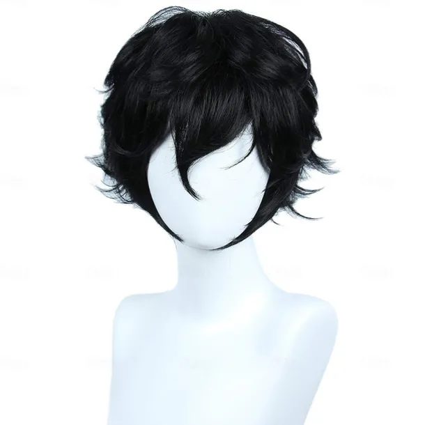 Cosplay Costume Wig Synthetic Wig Loose Curl Asymmetrical Wig Short Natural Black Synthetic Hair 10 inch Men’s Fluffy Black Halloween Wigs