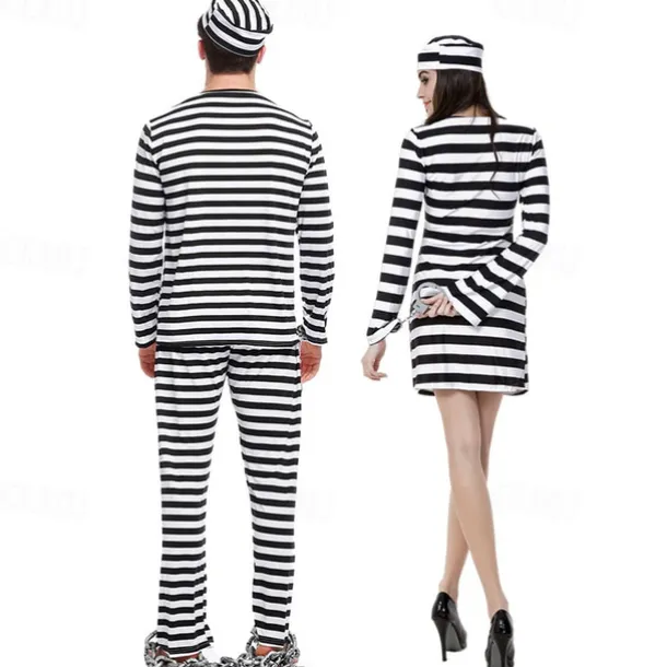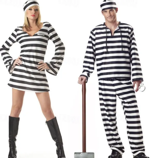Couples Prisoner Outfits Funny Costume Couples’ Costumes Unisex Movie Cosplay Cosplay Black Costume Carnival Masquerade Easy Carnival Costumes