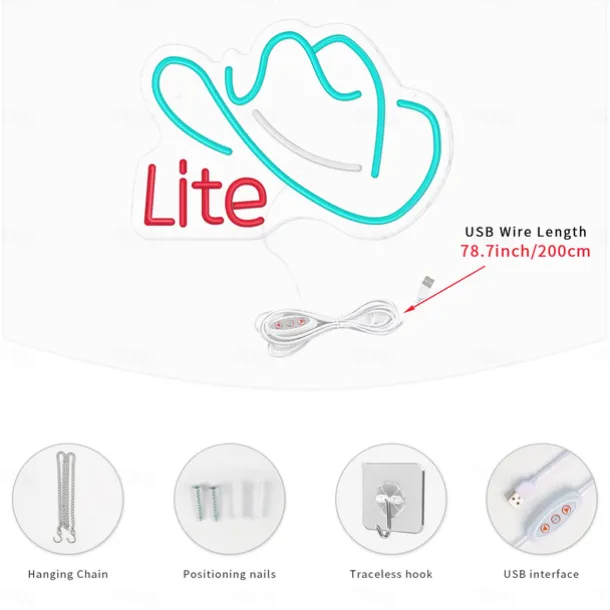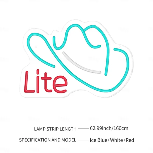 Cowboy Hat Light Neon Signs Ice Blue for Wall Blue LED Neon Lights USB Neon Wall Light Neon Bar Light Up Sign for Bedroom Party Pub Game Zone Decoration