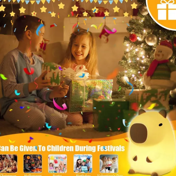 Cute Cartoon Capybara Silicone Night Light USB Rechargeable Timing Dimming Sleep Night Lamp for Children’s Room Decor