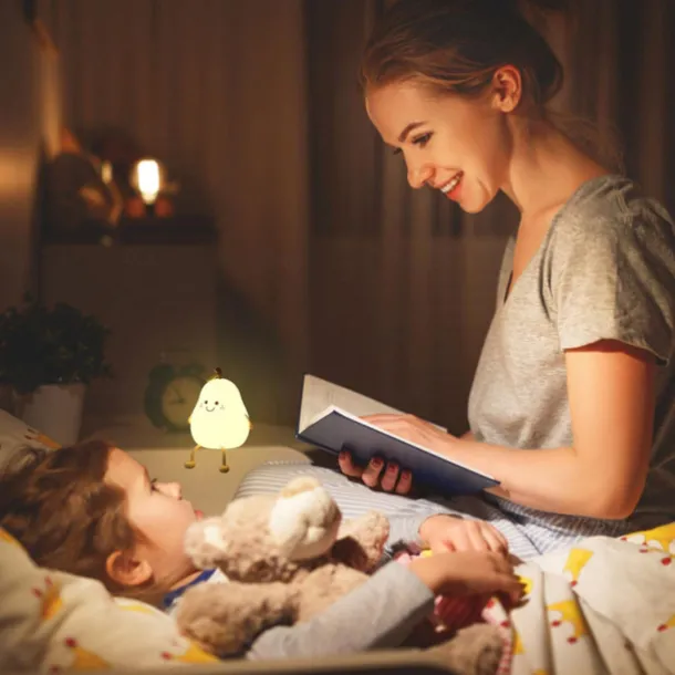 Cute Sleeping Silicone Night Light Gift Bedroom Sleeping Bedside Tap Light LED Pear Shape Night Light 5V USB Rechargeable Dimmable Touch Silicone RGB Desk Lamp Bedroom Decoration Kids Gift Baby Light