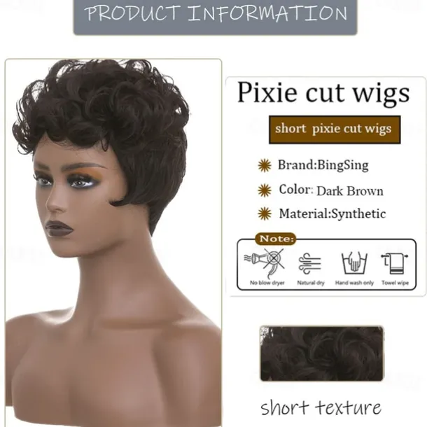 Dark Brown Short Pixie Cut Wigs for Black Women Curly Hair Replacement Short Black Layered Wavy Pixie Wigs With Bangs For Black Women
