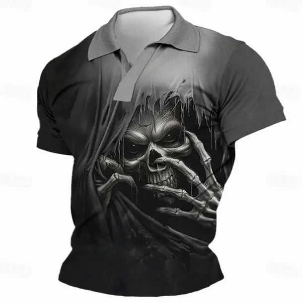 Day of the Dead Men’s Skull Polo Shirts Golf Shirt Short Sleeve Polo Shirts V Neck Horror Streetwear Festival Wear Party Outfits 3D Print Spring & Summer Black