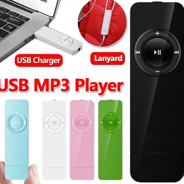 Digital MP3 Player Portable USB Rechargable Media Sound MP3 Music Player with Lanyard for Student Valentine’s Day Gifts