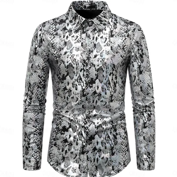 Disco 1980s Shiny Metallic Blouse / Shirt Masquerade Disco Fancy Dress Men’s Halloween Carnival Masquerade Performance Event / Party Stage Adults’ Shirt Spring & Summer