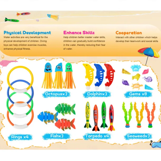Diving Pool Toys for Kids Age 4-12,28Pcs Swimming Underwater Pool Toys for Kids,Water Toys for Pool Party Favors,Summer Diving Toys