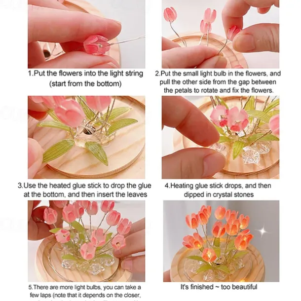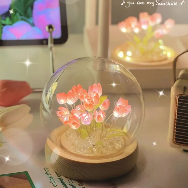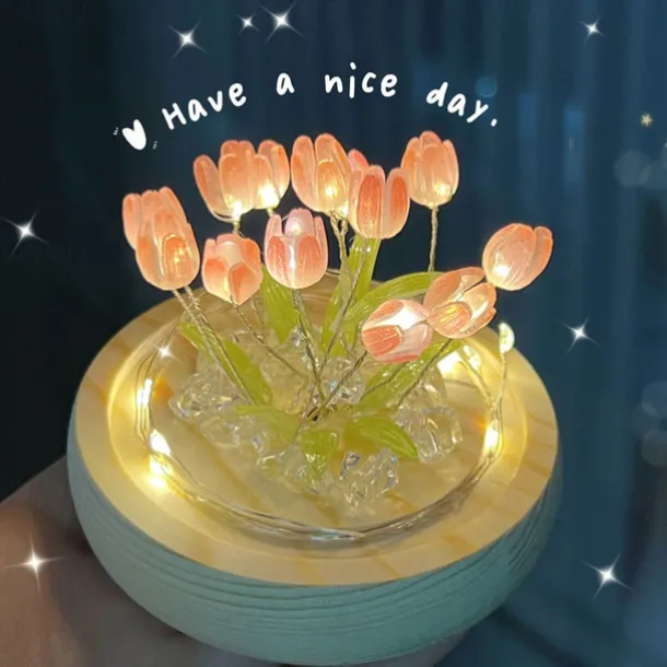DIY Tulip Night Light Simulation Flower Bedroom Valentine’s Day Gift INS Sleep Light Birthday Gift Atmosphere Light Desk Decoration