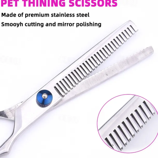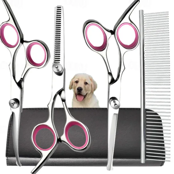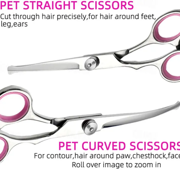 Dog Grooming Scissors Kit with Safety Round Tips Stainless Steel Professional Dog Grooming Shears Set – Thinning Curved Scissors and Comb for Dog Cat Pet