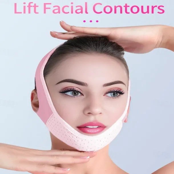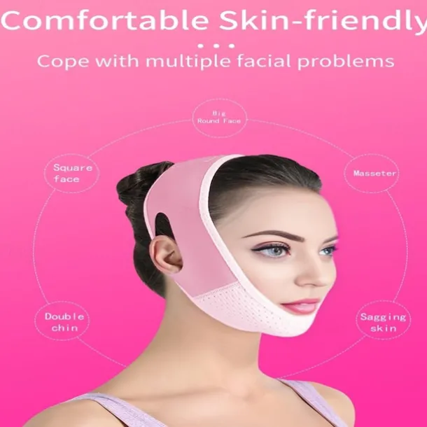 Double Chin Eliminator – V Line Lifting Mask with Chin Strap for Double Chin for Women -Face Lift, Prevent Sagging, V Shaped Slimmer – Innovative Lifting Tech (Pink)