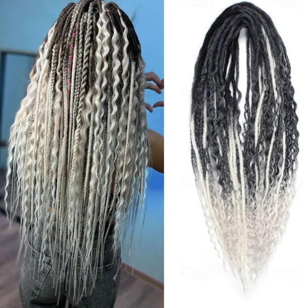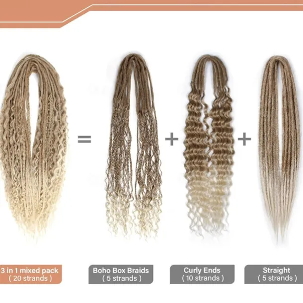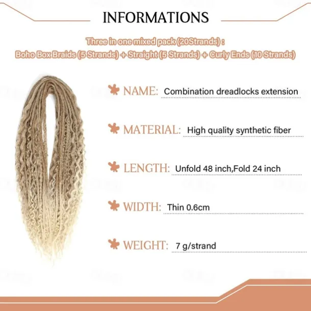 Dreadlock Extensions Double Ended 24 Inch 3 In 1 Mixed Light Brown to Blonde Dreads Set Synthetic Curly Ends Hippie Style Boho Wavy Dreads 20 Strands Handmade Dreads