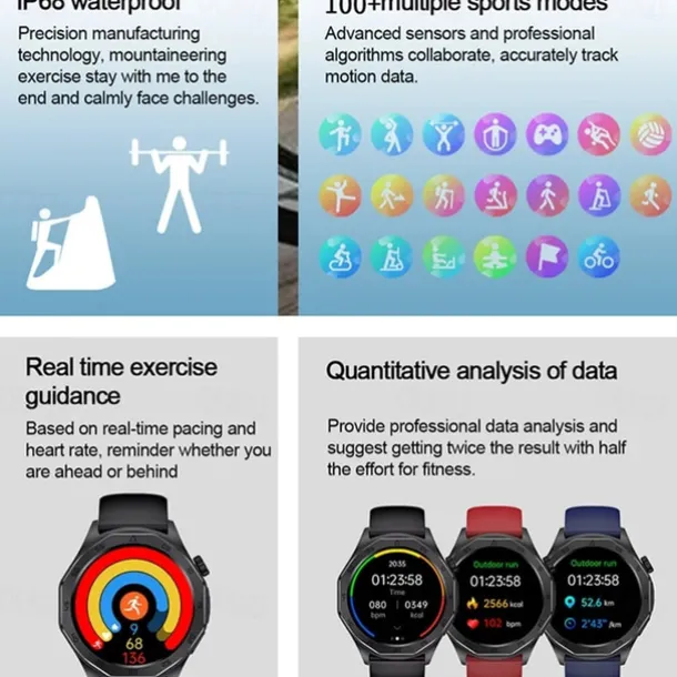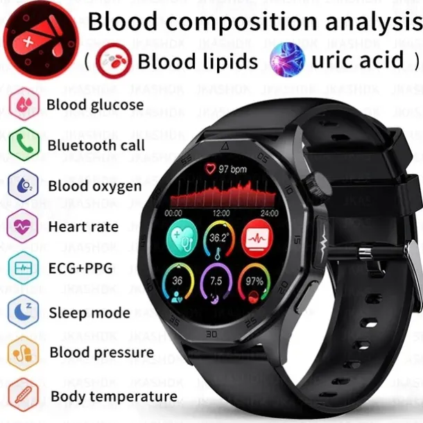 E480 Smart Watch 1.43 inch Smartwatch Fitness Running Watch Bluetooth ECG+PPG Temperature Monitoring Pedometer Compatible with Android iOS Women Men Long Standby Hands-Free Calls Waterproof IP 67