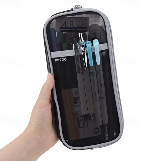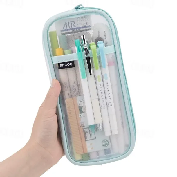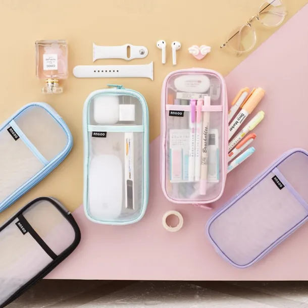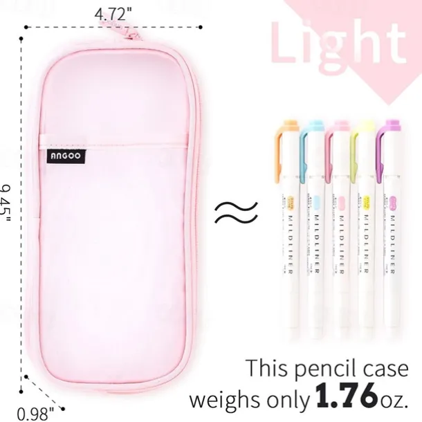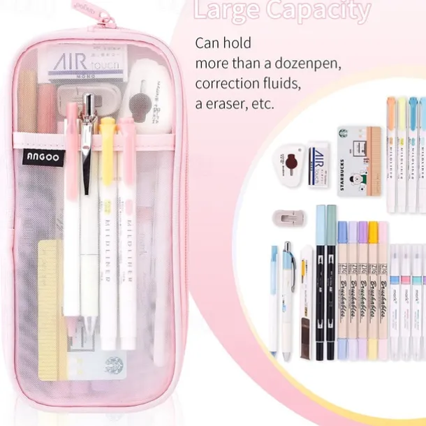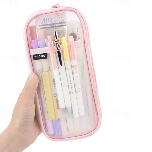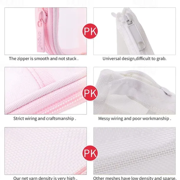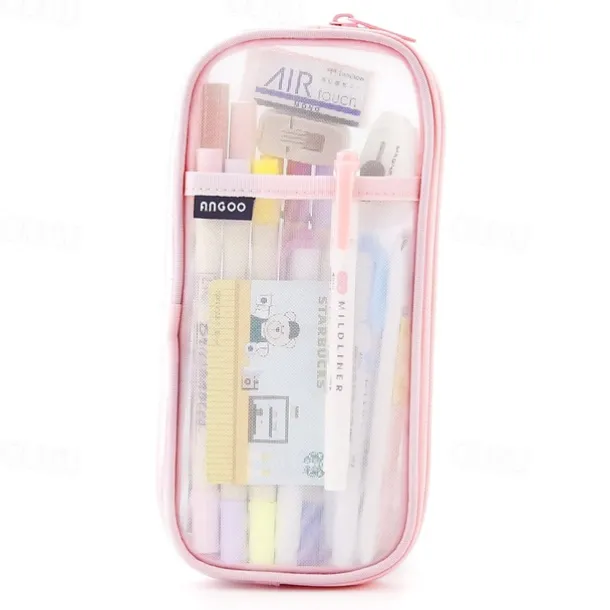 EASTHILL Grid Mesh Pen Pencil Case with Zipper Clear Makeup Color Pouch Cosmetics Bag Multi-Purpose Travel School Teen Girls Transparent Stationary Bag Office Organizer Box for Adluts(Pink)