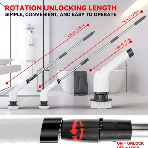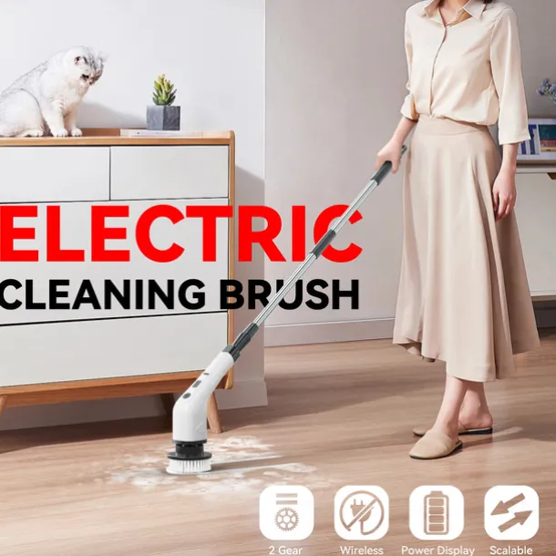 Electric Cleaning Brush 360 Rotating Mop for Kitchen & Car Adjustable Speed with 8 Brush Heads 2 Extension Arms Waterproof