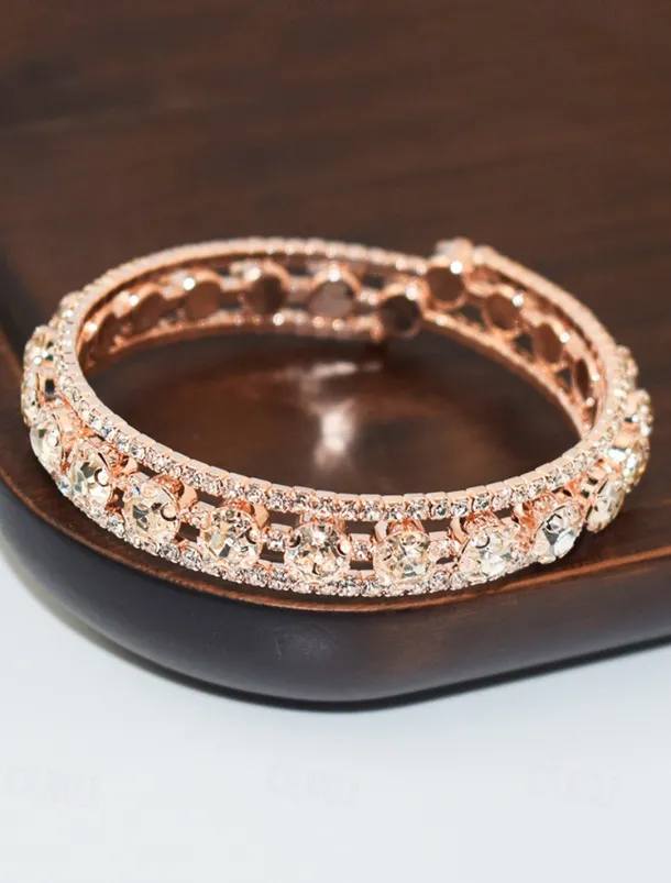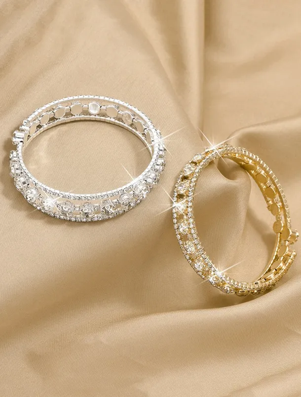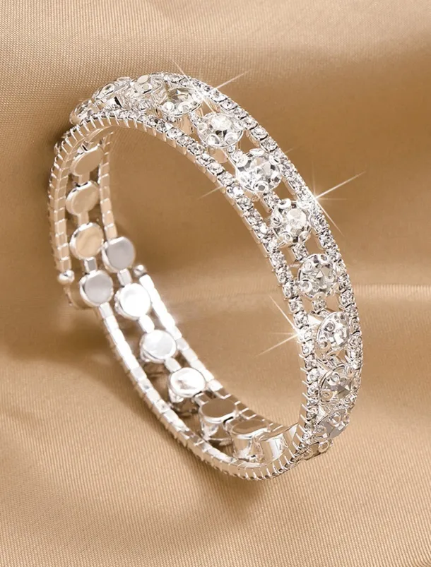 Elegant Double Row Simulated Rhinestone Bangle Bracelet – Sparkling Crystal-Inspired Jewelry for Women, Perfect for Weddings, Parties, and Formal Events