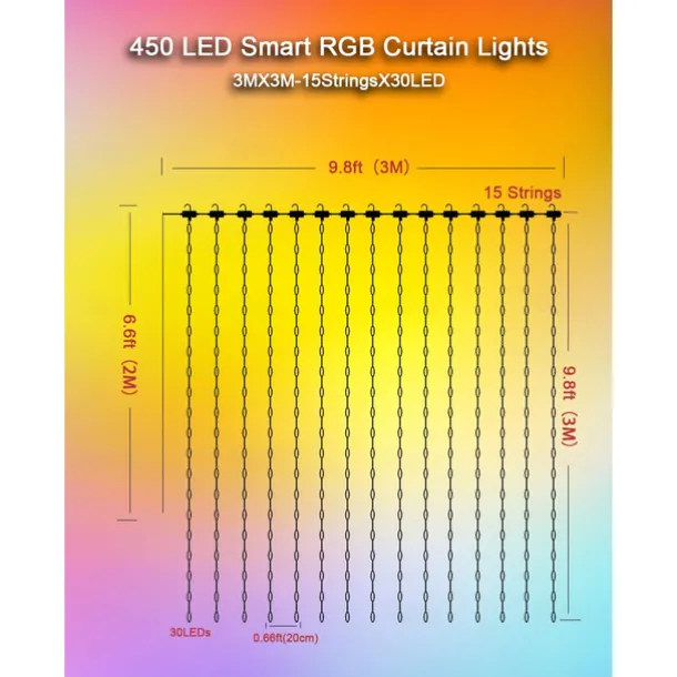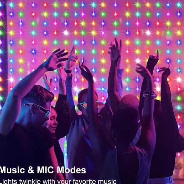 Elegant Wedding Party Reception Bluetooth RGB Phantom Curtain Light – USB Powered 300/450 LED Leather Thread LED String Lights for Party Decor
