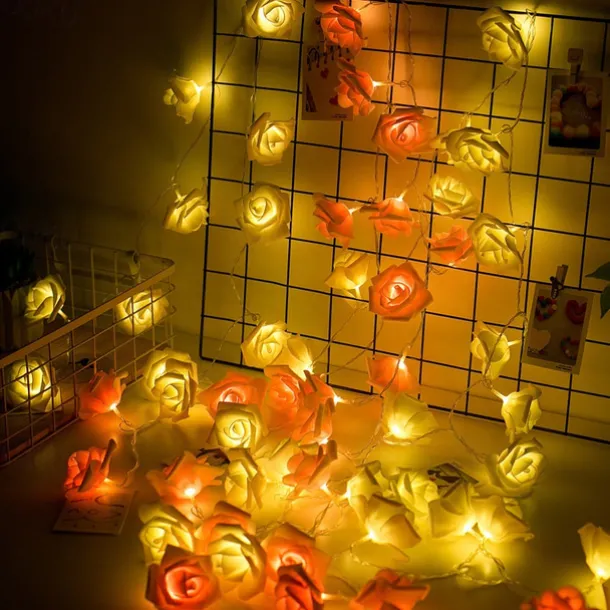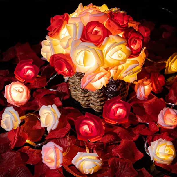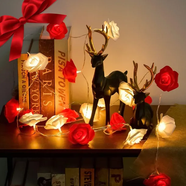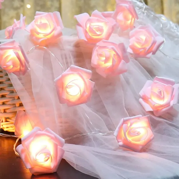 Elegant Wedding Party Reception Rose String Lights – Battery Operated Red/Pink/White 6M/3M/2M 40/20/10 LED Artificial Flower Garland for Valentine’s Day
