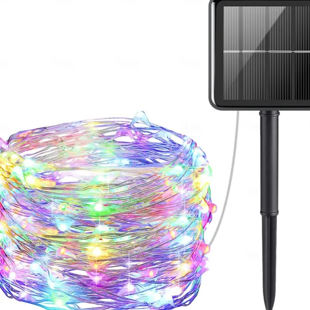 LED Beads Quantity: 100, Light Color: Warm White, RGB, Red, Blue, Green, Pink, White, Power Supply: Solar Energy, Type: String Lights, Style: Christmas, New Year’s, Copper Wire Lights, Features: Patio, Christmas Wedding Decoration, Solar, Waterproof, Quantity: 1PC, Wattage (W): 5, Voltage (V): Solar Powered, Initial Lumens (lm): 80, Length: 10m, Mode: 8 Modes: (1.Combination 2.Wave 3.Sequential 4.Glow 5.Flash 6.Slow Fade 7.Twinkle 8.Continuous), CRI: >90, Batteries Included: No, IP Rating: IP65, Occasion: Outdoor, Courtyard, Wedding, Party / Banquet, Control Mode: Mode Switching, Suitable Rooms: Dorm, Hallway, Home Office, Dining Room, Bedroom, Living Room, Shape: Wire, What’s in the box: Solar Panel,