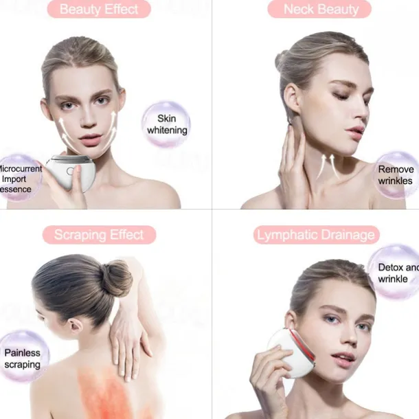 EMS Face Guasha Massager with Red/Blue/Purple Light 42 Heat Massage Microcurrent Machine for Anti-Aging Anti-Wrinkles Face Lifting Body Relief