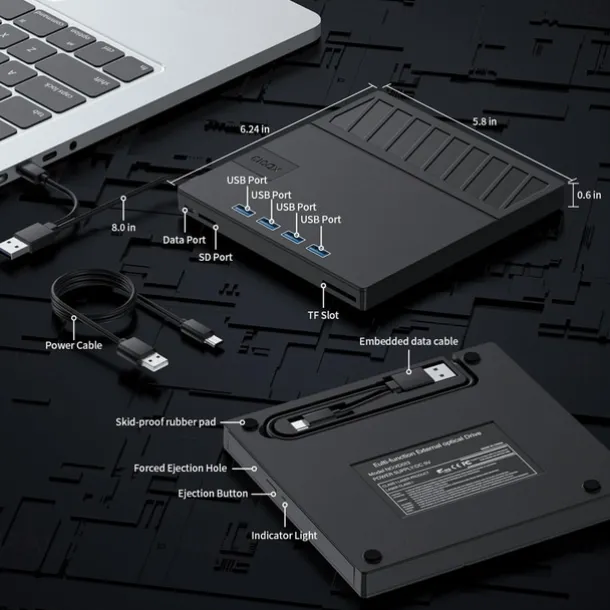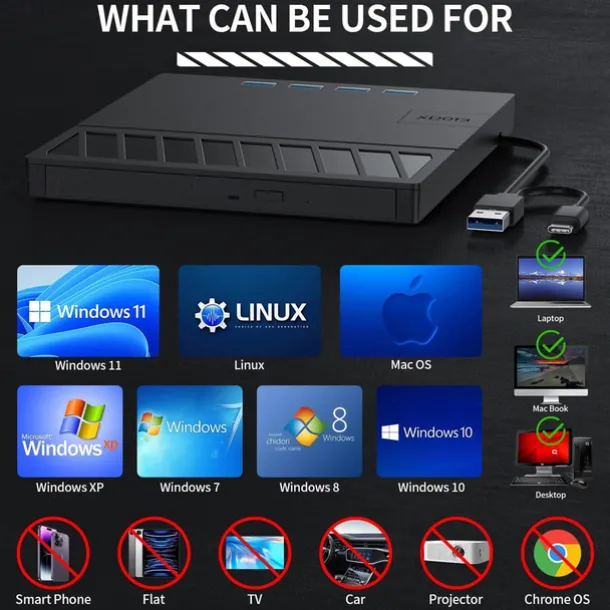 External CD/DVD Drive for Laptop 7 in 1 USB Ultra-Slim Portable CD/DVD Player Burner Compatible with External DVD Player for Laptop
