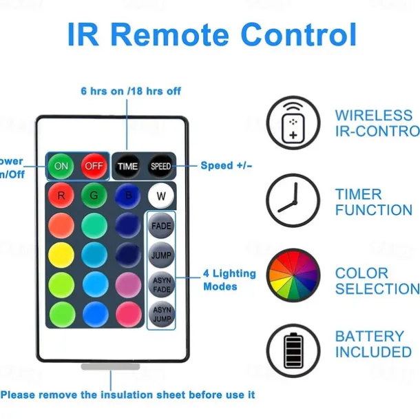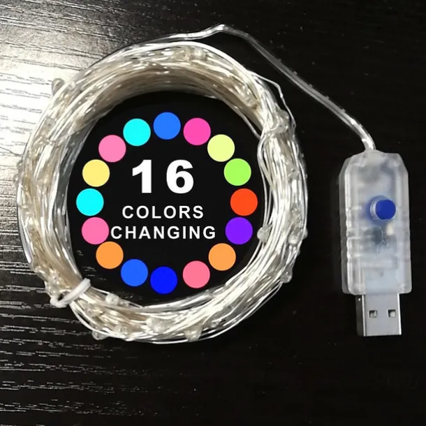 LED Beads Quantity: 50-100, Light Color: RGB, Power Supply: USB, Type: String Lights, Style: Copper Wire Lights, Christmas, New Year’s, Features: Party, Decorative, Waterproof, USB, Tiktok LED Strip Lights, Quantity: 1 set, Wattage (W): 5, Voltage (V): USB Powered, 5, Initial Lumens (lm): 50-100, Length: 5m, 10m, Mode: 8 Modes: (1.Combination 2.Wave 3.Sequential 4.Glow 5.Flash 6.Slow Fade 7.Twinkle 8.Continuous), Batteries Included: Yes, Width: 2.3mm, Control Mode: IR Control, Suitable Rooms: Dorm, Playroom, Home Office, Bedroom, Living Room, Shape: Wire, What’s in the box: 1 24Keys Remote Controller,