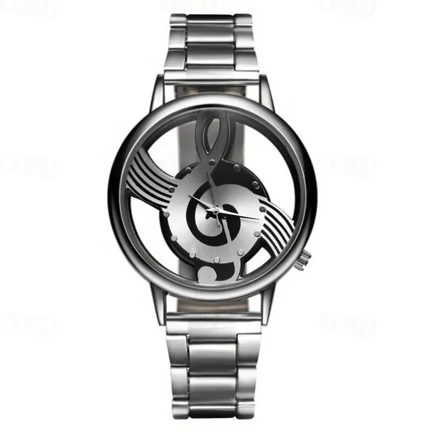 Fashion and Casual Music Note Notation Watch Stainless Steel Wristwatch for Men and Women Silver Watches