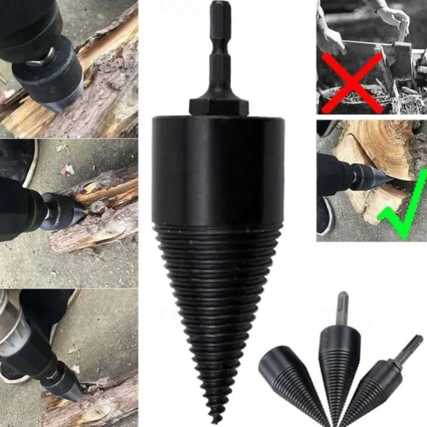 – Say goodbye to back-breaking manual log splitting with our Wood Breaker – Drill Bit Firewood Splitter!