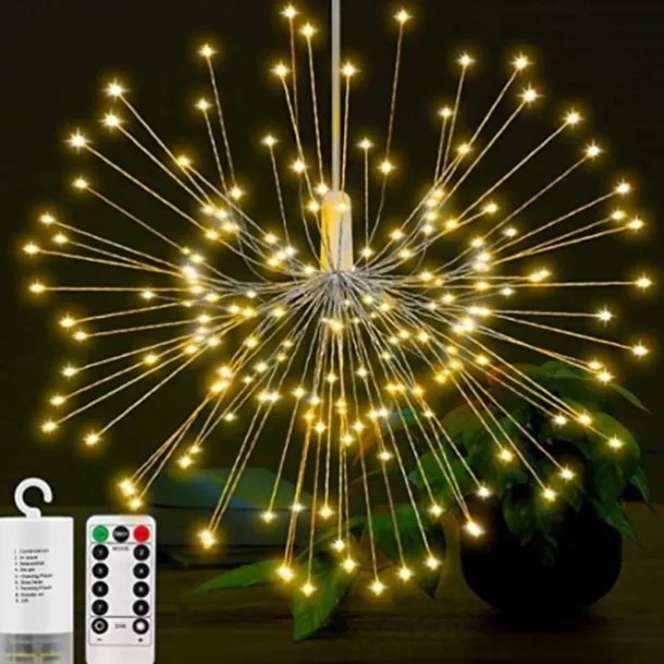 Firework Lights 150 LED Starburst Lights Copper Wire Lights 8 Modes Battery Operated Fairy Lights with Remote Warm White Hanging Christmas Lights for Party Patio Bedroom Decoration