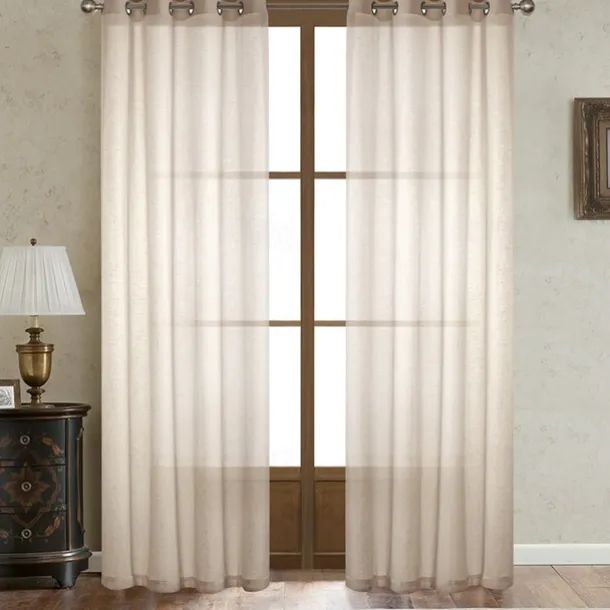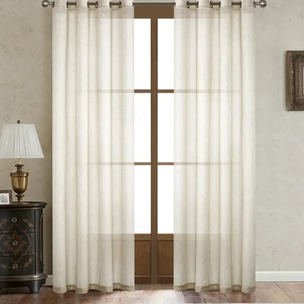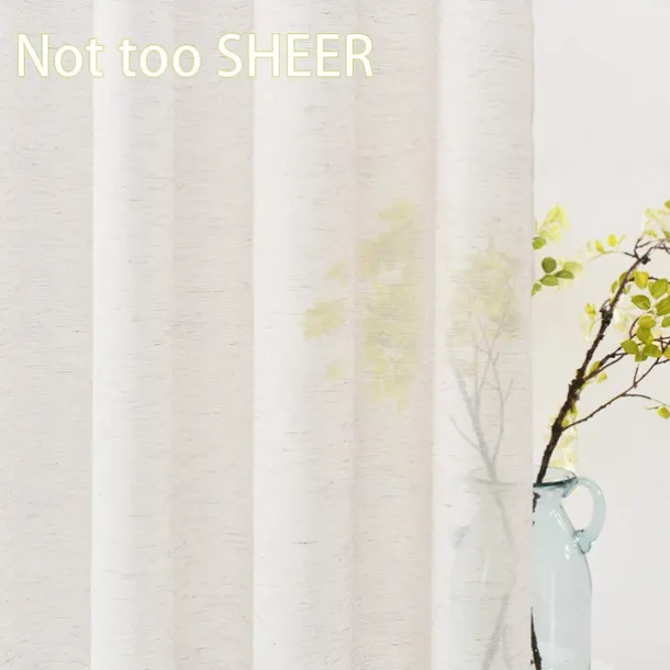 Flax Cotton Linen Pinch Pleated Sheer Curtains Long Vintage French Window Panel Drapes with Back Tab for Farmhouse Living Room Bedroom, Natural 1 Panel