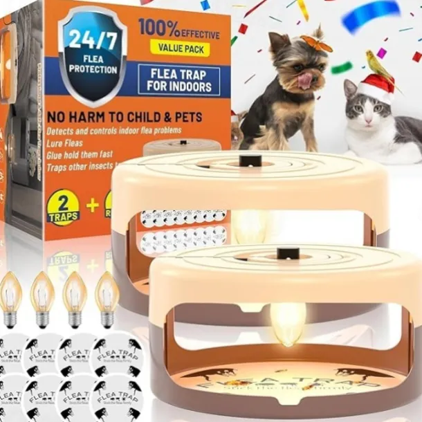 Flea Traps for Home – Indoor Pest Control Bed Bug Trap with 8 Sticky Discs, Non-Toxic and Safe for Pets and Kids