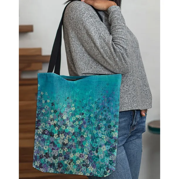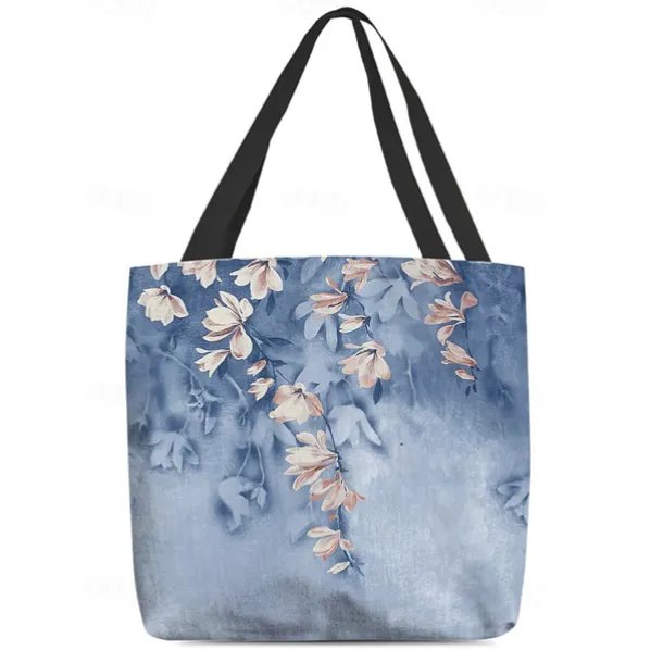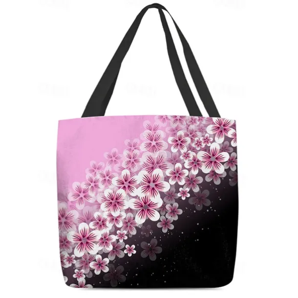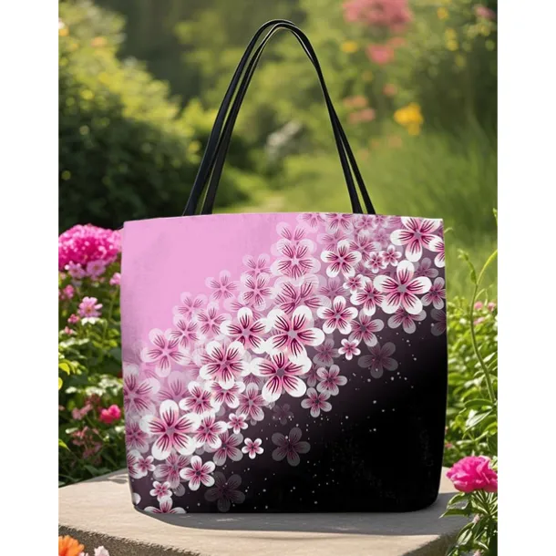 Floral Tote Bag for Women – Stylish Large Capacity Handbag with Black and Pink Flower Design, Perfect for Shopping, Travel, and Daily Use