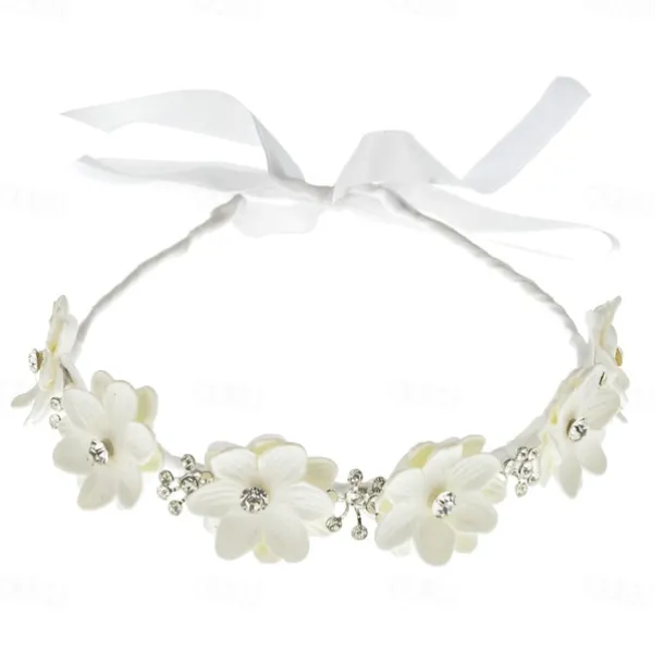 Flower Girl Headpiece Princess Wedding Headband Girls First Communion White Floral Wreath Hair Accessory